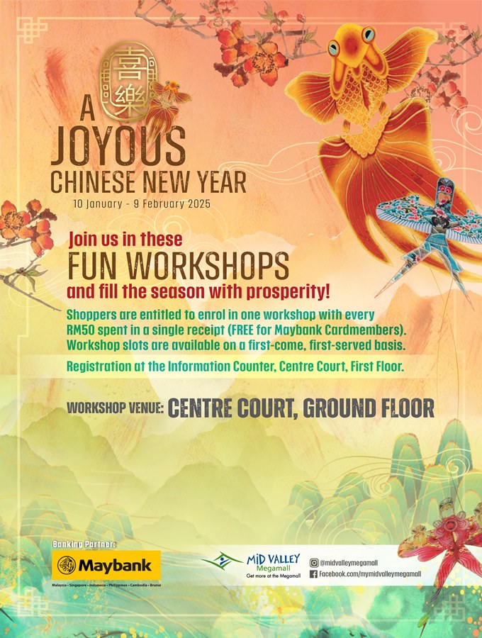 "喜樂" A Joyous Chinese New Year 2025 will fill your heart with springtime joy! Colourful, hand painted Chinese kites soar above the bustling activity. The vibrant atmosphere sets the stage for exclusive Chinese New Year promotions, gift redemptions, live performances and special workshops. Send festive greetings at our Spring Calligraphy Station or make a heartfelt donation to spread the blessings of spring––it’s all about enjoying and sharing happiness with one another this festive season. Join us here for a buoyant start to the Year of the Snake!